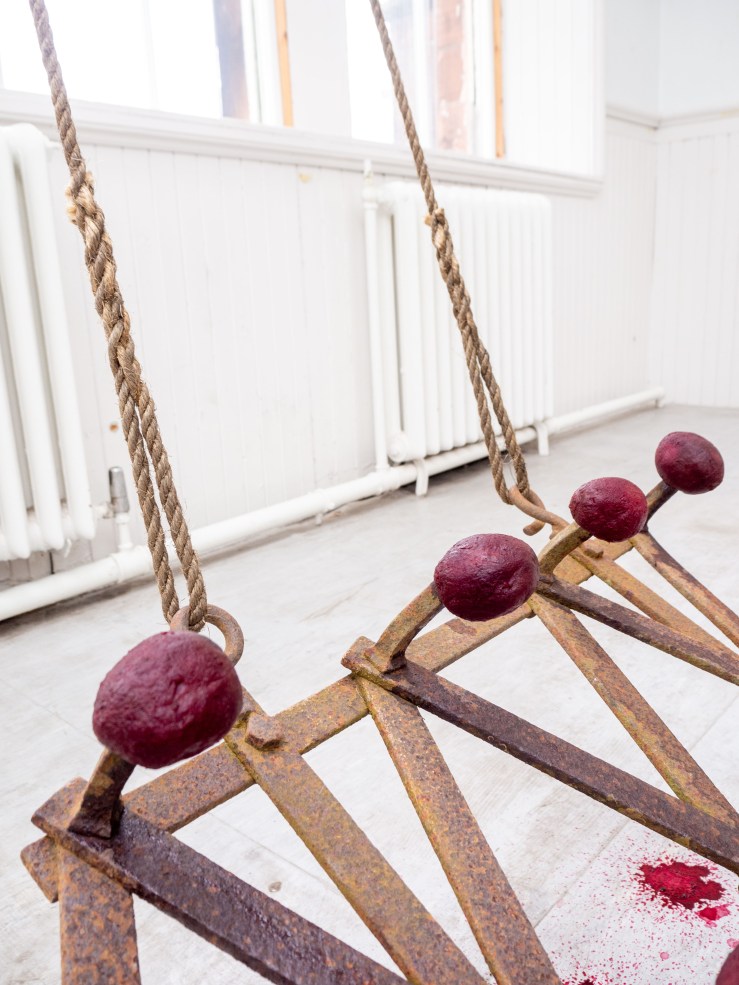 Untitled, 2023 net curtains, cattle feederHarrow, 2022 harrow, beetroot, ropeDetail of HarrowDetail of HarrowDetail of HarrowDalhousie Street, 2021 solar water featureNew City Road, 2022 solar water featureJust off Cuthbertson Street, 2021 solar water featureBath Lane, 2022 solar water featureWest Regent Street, 2022 solar water featureHouse keys, 2021 discarded keys, hooksDetail of House Keys